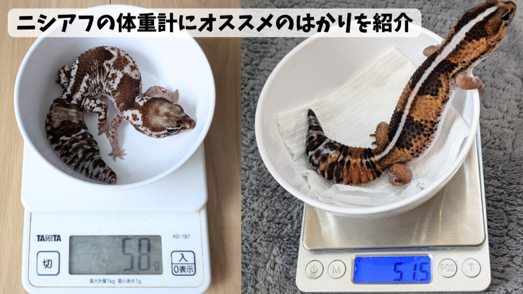 ニシアフを飼育していく中で健康状態を把握するために定期的な体重測定をすることが大切です。